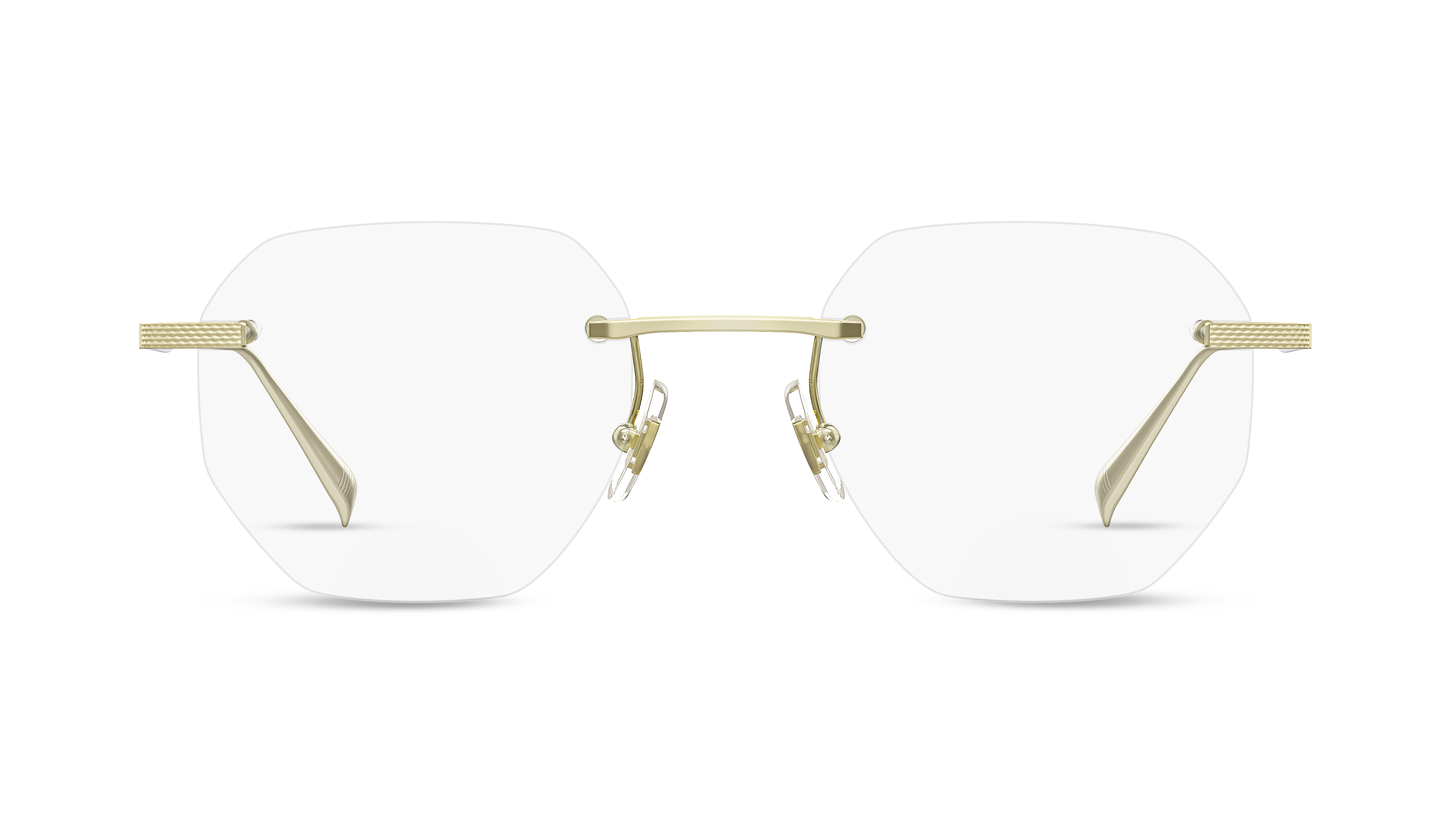 Rimeless optical frame with titanium temples decorated with the new barley pattern